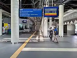 When KTM Komuter services were launched in 1995 to serve the Rawang-Seremban Route and the Sentul-Port Klang Route, ticket counters and faregates were added to the station, in common with other KTM Komuter stations. The location of Komuter facilities meant that only the newer island platform could be used by KTM Komuter trains (see platform).