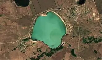 Among the lakes in its vicinity, Karaungir lies 11 kilometers (6.8 mi) to the west, Zhamantuz 22 kilometers (14 mi) to the NNW, Urymkay 12 kilometers (7.5 mi) to the SSE, Balykty 15 kilometers (9.3 mi) to the ESE, and Shchuchye 22 kilometers (14 mi) to the northeast.[2][3]