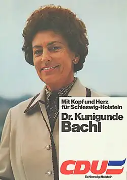 1. ^ a b c d e f g h i j k l "Bachl, Kunigunde Dr. med". Landtag of Schleswig-Holstein. Archived from the original on 2016-12-19. Retrieved 2023-07-24.