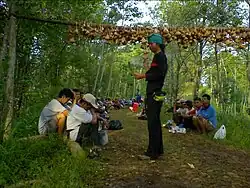 In western Cilacap, particularly in the Sundanese-influenced districts of Tambaksari and Dayeuhluhur, sedekah ketupat is held during Rebo Wekasan, the final Wednesday of the Islamic month of Safar. The event is rooted in local beliefs associated with the potential misfortune of the day. Villagers hang ketupat at village borders, gather for communal prayers, and consume the ketupat together as a symbolic act of protection and gratitude. In some areas, the practice has evolved into a cultural festival featuring processions and gunungan, large decorative structures made of ketupat, while maintaining its spiritual significance.[38]