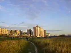 It is one of the largest residential areas in Saint Petersburg with a population of 410,000,[1] located in the south of the city and surrounded by the industrial area in the north, the Moskovskaya Line of Oktyabrskaya Railway in the east, a line of Vitebskaya Railway in the west, and the ring road in the south.[2] For that reason it's often called a city within a city.[3]