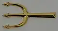 The unit's insignia (förbandstecken) is the "golden trident". Originally it was worn as cap badge on the beret, but in 1994 Coastal Rangers officially exchanged their cap badge for a patch worn on the M/90 field uniform and the M/87 dress uniform as unit insignia, however the class of 1994 still managed by their own initiative to receive it as a cap badge instead, thus becoming the last class to receive it as such. As a result, the class of 1994 became the only Coastal Ranger in history to both wear the trident in their berets and as a patch on their uniforms simultaneously. As the golden trident is awarded for successfully passing the Coastal Ranger course, it may be worn also by personnel from other units who passed the course, whereas the uniform badge is worn exclusively by members of the Coastal Rangers.