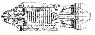 • Turbine: 3-stage[1] turbine, of which only the first and second stages are cooled[1]