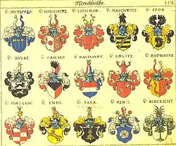 Lüttichau arms on the center top in Siebmachers Wappenbuch