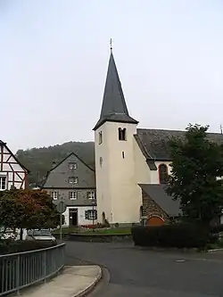 - Saint Maximin's Catholic Church (Kirche St. Maximin), Kirchplatz 5 – Baroque aisleless church, marked 1753, Romanesque west tower; outside cross, wayside cross, two grave crosses with tomb slabs; Gothic Revival graveyard cross, 19th century