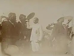 Rainandriamampandry, seen here being led to the site of his execution in 1896 for suspected involvement in the Menalamba rebellion, is especially lionized in the narrative of L'Aube rouge.[1]
