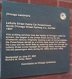 - ^ "Chicago Landmarks -LaSalle Street Cable Car Powerhouse".