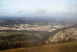 La Chaux-de-Fonds (French: [la ʃodəfɔ̃]; archaic German: Schalu; Arpitan: La Châls) is a Swiss city in the canton of Neuchâtel. It is located in the Jura Mountains at an altitude of 992 metres, a few kilometres south of the French border. After Geneva, Lausanne, Biel/Bienne, and Fribourg, it is the fifth-largest city in the Romandie, the French-speaking part of the country, with a population (as of December 2020) of 36,915.[3]