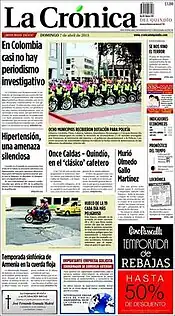 - ^ "La Crónica del Quindío" (PDF) (in Spanish). Bogotá: Colombian Association of Newspaper and News Media Publishers. Archived from the original (PDF) on 14 October 2014. Retrieved 25 April 2013.