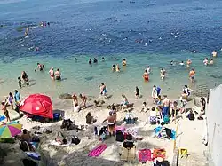 The air throughout La Jolla Cove area is filled with the odor of sea lion and bird feces. The smell can be especially strong on the warmest days in the summer.[6][7][8] The extensive fecal contamination also has caused unsafe swimming conditions.[9]