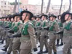 La Marcia dei Bersaglieri or March of the Bersaglieri in English, is the official hymn of the Bersaglieri Corps, an elite unit of the Italian Army. It was composed in 1860, just 25 years after the creation of the corps, by army officer Giulio Ricordi, with words to the composition being written by poet Giuseppe Regaldi. 2 years later, Peter Ludwig Hertel made a version of the march for Paolo Taglioni's ballet Flik Flok, which later arranged by Raffaele Cuconato took the form known and played todayToday, the march is the flagship of the corps's tradition as it is played by the various Italian Bersaglieri Bands that exist.[1][2]