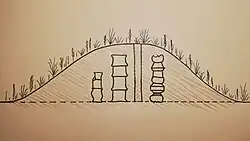 Drawing representing various "timburas" and a chimmeney inside a Tola (mound).