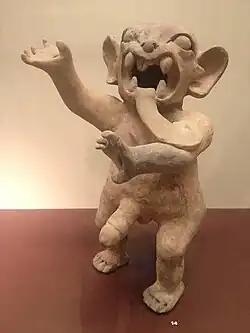 Some researchers believe that several of these animals, natural or not, could have represented the mythical ancestors of several families, since there are a large number of human figurines that wear these characters in their headdresses, there are also cases of people who were buried with some of these animals, which would have been sacrificed in honor of the deceased.[16]