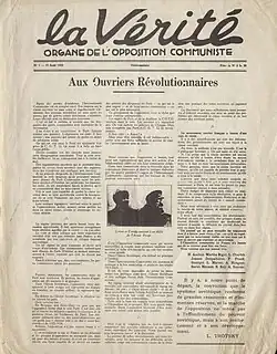 La Vérité (The Truth) is the first Trotskyst publication in history, having its first issue published on August 15, 1929, in French.[1] Its name refers to Pravda, which means Truth, and was chosen because Trotskyists believed that the French labor movement needed "Truth therapy".[2]