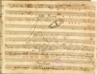 First page of the complete manuscript score kept at the Conservatorio San Pietro a Majella