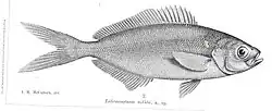 The blue knifefish (Labracoglossa nitida) is a species of marine ray-finned fish, a member of the family Scorpididae. It is native to the Pacific Ocean waters off eastern Australia over to New Zealand, where it occurs at depths reaching from the surface to 20 m (66 ft) in inshore waters over reefs. It can reach a length of 20 cm (7.9 in), though most do not exceed 15 cm (5.9 in).[1]