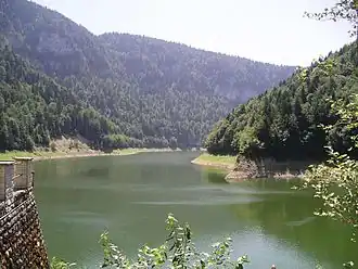 Lac de Moron is a reservoir formed by damming the river Doubs on the border of France and Switzerland. It can be reached from Les Planchettes or Les Brenets in the Canton of Neuchâtel (Switzerland) and from Le Barboux in the Doubs department (France).