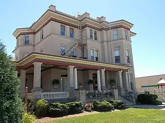 The house was extensively renovated in 1906. The brick veneer was removed and replaced with gray cement brick of the Iowa Granite Brick company. A flat roof was installed and the tower was removed. As a result, the home now reflected the Georgian Revival style. In 1920 it was donated to the YWCA who continues to use the building. Other additions were built onto the building in subsequent years.