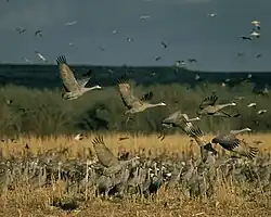 Sandhill cranes taking flight at Lake Andes National Wildlife Refuge.