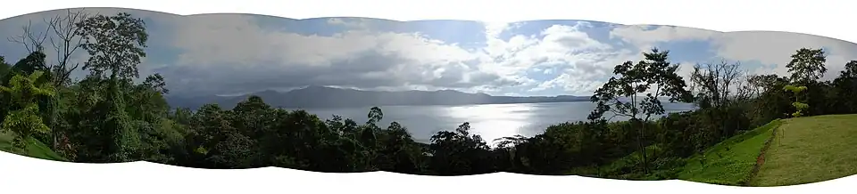 Lake Arenal (Spanish: Lago Arenal) is a lake in the northern highlands of Costa Rica. It is the largest lake in Costa Rica at 85 square kilometres (33 sq mi). Its depth varies between 30 and 60 meters (98 and 197 feet) seasonally.[2]