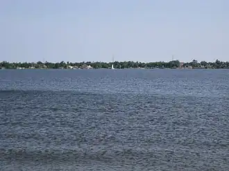 Lake Charles (French: Lac Charles) is a brackish body of water located within the estuary of the Calcasieu River in Southwest Louisiana, United States.[1] It is situated almost entirely within the Lake Charles city limits. The Calcasieu Ship Channel flows along the western side for large ships to pass and is the western boundary of the city limits.[2] The I-10 Calcasieu River Bridge crosses at the extreme northwestern edge of the lake and river and connects the city of Lake Charles and the city of Westlake.