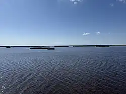 In May 2016, 33 square miles (85 km2) of the southern portion of the lake were affected by an algal bloom.[29] The outbreak was possibly due in part to nutrient-laden waters reaching the lake from farms and other sources.[29][30] Microcystin was found among the other species involved in the outbreak.[29]