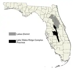 Location Lake Wales Ridge Complex geomorphological province in Florida