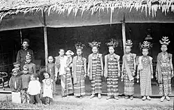 Originally the lineage of the Lampung people came from Sekala Brak kingdom.[7] However, in its customary sense the Lampung people developed and became two people group, namely the Saibatin Lampungs (coastal) and the Pepadun Lampungs (interior).[8] The customs of the Saibatin people are well known for its aristocracy,[8] while the customs of the Pepadun people which emerged later had democratic values developed in opposed to the aristocracy values held by the Saibatin people.[8]