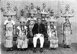 The origins of the Lampung people is closely tied to the name of Lampung itself. In the 7th century the Chinese had already mentioned about a place in the south (Nampang) where it is said to be the place of the Tolang Pohwang kingdom, the location of the former kingdom's territory may now refer to the area of Tulang Bawang Regency or regions alongside the Tulang Bawang River, this is supported by Prof. Gabriel Ferrand (1918).[3] There are strong evidence that Lampung was part of the Srivijaya empire with its capital in Jambi and did conquered parts of South East Asia region including Lampung until the 11th century.[4]