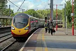 A Virgin Trains service to London Euston arriving at platform 4 in May 2015