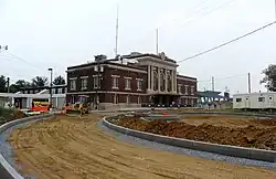After decades of deferred maintenance, a complete station refurbishment was proposed in 1997, but it was not until June 2009 that a $12 million renovation of the station was initiated by Amtrak and Lancaster County.[31][32] Plans included a new HVAC system, improved ticketing and waiting area for intercity buses, an expanded parking lot, landscaping, a taxi stand, and "a complete rehabilitation of the station's interior and exterior".[31] However, the start of construction was delayed until October.[33] By September 2011, the renovations were estimated to cost $2 million over the planned amount and were a year behind schedule.[32][34] After being completed, it was discovered that the bus bays at the station could not accommodate the 45-foot-long (14 m) coaches used by Bieber Transportation Group.[35] The bays, which were being used as taxi stands instead, had been originally designed for the 40-foot (12 m) buses that had been used by the now-defunct Capital Trailways. The buses owned by Bieber, consequently, were unable to negotiate the turn in the parking lot leading to the bays. The curbs in the parking lots were eventually cut-back to allow more space for maneuvering.[35] Intercity bus service was run by Bieber Transportation Group from the station to York, Philadelphia, and New York City until it was discontinued on April 1, 2018.[36][37]