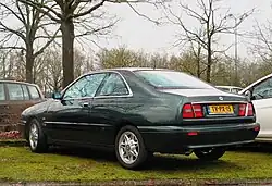 The Coupé was designed by Centro Stile Lancia and built by Maggiora. It is technically quite different from the saloon, having a 120 mm (4.7 in) shorter wheelbase,[11] wider rear track and a distinctive profile with frameless doors. The front, from bumper to the window screen, was identical to the other Kappa body styles. It was Lancia's first coupé since 1984, when the Beta and Gamma coupés were discontinued and remains the last Lancia to feature this body style to this day. The small production capacities at the Maggiora factory for this essentially hand-made car, and the relatively high price, destined it to be a rare vehicle. For cost cutting reasons, the rear lights were shared with the Delta. 3,263 were manufactured from 1996 to 2000.[6]