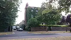 The property, like many in the area, was part of the Dysart and Tollemache family estate. Langham House became home to Sir Lyonel Tollemache, 4th Baronet and his son, Cecil, following their donation of Ham House to the National Trust in 1948.[4] The house was listed Grade II in January 1950.[1] After Lyonel's death at the house in 1953, the house and garden were sold separately, Langham House was converted from a single dwelling into flats and the garden plot was sold for development on a 999-year lease in 1955.[2][5] The land to the south of the house became the access road for the Grade II*-listed Langham House Close development, designed by Stirling and Gowan in 1956; this was built on the garden plot behind the house, between 1957 and 1958, and is considered an exemplar of Brutalist architecture.[6][7][8]