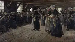After 15 years of fame, from 1855 to 1870, the artists of the Oosterbeek School were looking for a new place to paint. Around 1870, the painter, Jozef Israëls, discovered the village of Laren. He visited often with his son, Isaac, whom he instructed in outdoor painting. His enthusiasm for Laren, and the surrounding landscape and agricultural activity, was infectious, and other artists from the Pulchri Studio began to join him. Albert Neuhuys and Anton Mauve were the first to follow Israëls in 1877 and in 1882.[1][2] Later, Hein Kever, Willem Steelink, Hendrik Valkenburg, Wally Moes, Etha Fles, Arina Hugenholtz and Tony Offermans Jan Hendrik Weissenbruch, Willem Roelofs, and Max Liebermann (the first foreign painter at the Laren School and an old friend of Israël) came to work in Laren. Thus, the Laren School as an artist colony was born. Some of these painters settled in the region; their Laren-inspired works were shown to the public at the Pulchri Studio and affiliated galleries.