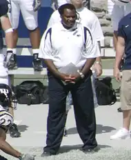 Larry A. Johnson (born c. 1952) is an American football defensive line and associate head coach for the Ohio State Buckeyes football team. Prior to joining Ohio State, he served as an assistant football coach at Pennsylvania State University from 1996 to 2013. Johnson was a high school football coach in the Washington, D.C. area from 1983 to 1993. He is the father of former National Football League running back Larry Johnson and former Penn State wide receiver Tony Johnson.