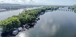 In 1998 Latsch island was officially made a part of the city of Winona. The number of houseboats on the island was strictly limited to 101, and a rule was put in place that houseboats could not be repaired beyond 50% of their original value.[3][2][5] The intention of this law was to gradually displace the houseboats on the island, however, the law against the repairing of the houseboats is routinely ignored.[2][3] Residents pay an annual mooring fee to the city in exchange for their right to dock on the island. As of 2021, this fee was $350 per annum.[5]