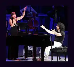 Since November 2010,[19] Jelencovich has performed as a lead vocalist on Yanni's international tours, which included performances in North and South America, Europe, Asia and Africa.[20] Jelencovich's vocals were included in three tracks from Yanni's live-concert CD and DVD Yanni Live at El Morro, Puerto Rico (released April 2012),[8][9] which was also broadcast in PBS television specials beginning in March 2012.[21] She also was the primary artist (soprano vocalist) for the "Nightingale" track to Yanni's 2014 Plácido Domingo-Ric Wake collaboration album, Inspirato,[10] and performed in Yanni's 2015 The Dream Concert: Live from the Great Pyramids of Egypt and in the resulting 2016 CD/DVD and PBS special.[22] On November 30, 2017, Jelencovich performed "Nightingale" in Jeddah, Saudi Arabia, Yanni later saying that Jelencovich was the first woman allowed to perform onstage in that nation without wearing the traditional veil,[23] and was the first woman in recent history to sing on stage for a mixed audience of men and women in that country.[24]