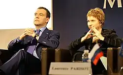 Parisot with Russian President Dmitry Medvedev whilst the latter was in Paris on a state visit on 2 March 2010.