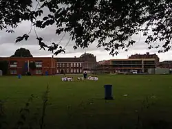 Due to the need for maximum food production within Britain during the Second World War, unproductive land (sports fields, large ornamental gardens, parks, golf courses, etc.) was requisitioned for farming or allotment gardens. In this period, the School Field and a third of the Hart Field were used in the grass growing season for sheep grazing but remained in school sport use. Most of the rest of the Hart Field was ploughed and used for growing wheat, except a strip along the bottom edge border that was used for allotment gardens; that border was adjacent to existing allotment gardens which were outside the school property. Approximately one third of the school's sixth form lost their lives during the war.