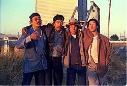 ![]() Lawson Inada (left) with Frank Chin, Shawn Wong, and Michael Chan on the set of John Korty's 1976 film, Farewell to Manzanar | |
