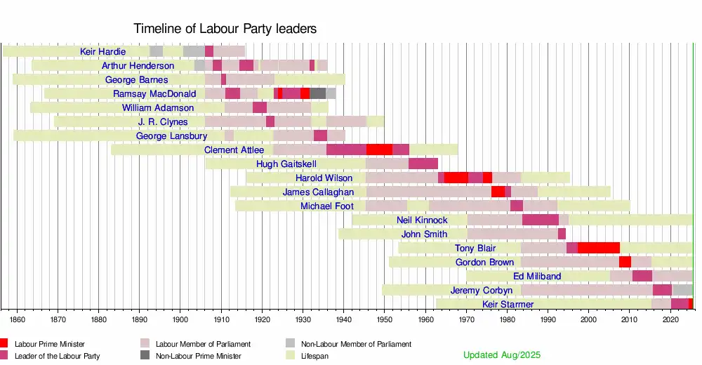 - ^ Boothroyd, David. "Leaders of the Labour Party". election.demon.co.uk. United Kingdom Election Results. Archived from the original on 6 August 2020. Retrieved 30 June 2015.