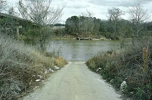 A boat ramp along the Leaf River in Hattiesburg. U.S. Highway 11 is at left.