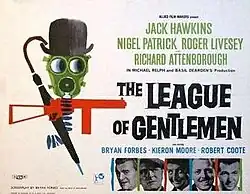 The League of Gentlemen is a 1960 British heist action comedy film directed by Basil Dearden and starring Jack Hawkins, Nigel Patrick, Roger Livesey and Richard Attenborough. It is based on John Boland's 1958 novel of the same name, and features a screenplay written by Bryan Forbes, who also co-starred in the film.