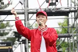 On April 7, 2014, Chan-hyuk and Su-hyun officially debuted as AKMU (Akdong Musician) with their studio album Play, instantly becoming a commercial success. The sibling duo has since released two more studio albums, two extended plays, one single album and ten singles in their discography. In September 2017, Lee enlisted in the Korean Marine Corps for his mandatory military service, thus temporarily halting all AKMU activities until his return.[3] In midst of his service, it was revealed the Korean Marines officially chose Lee's self-written song, "Marine Triumph" (해병승전가), to represent the Corps.[4][5] Lee completed his mandatory military service on May 29, 2019, and was discharged. His first appearance since hiatus was as AKMU on JTBC variety program Knowing Bros, where the episode was filmed the day after his release.[6]