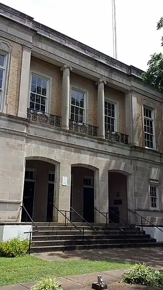 The Lee County Courthouse features two courthouse buildings constructed at 15 East Chestnut Street in Marianna, Arkansas, United States, the county seat of Lee County. The original courthouse was a wooden at the corner of Poplar and Mississippi streets built in 1873 when Marianna became the county seat of Lee County.[3] A larger courthouse was built in 1890 and it was expanded with another new courthouse building added next to it in 1936. The courthouse compound was listed on the National Register of Historic Places in 1995. The newer courthouse was designed by Memphis, Tennessee based architect George Mahan Jr. with Everett Woods and built in the Colonial Revival[3] and Art Deco styles.