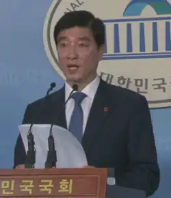 After serving as the Mayor for three times, the maximum term limit, Lee joined his party leader Lee Hae-chan's cabinet as one of party's spokespersons.[3] He earned his party's nomination for the 2020 general election defeating the incumbent, three-term parliamentarian Shim Jae-gwon.[19]