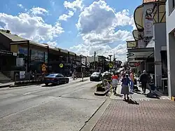 The main commercial area in Leichhardt is located on Norton Street, north of Parramatta Road (Great Western Highway) and parallel to Balmain Road. The Norton Street commercial area contains a mix of residential buildings, restaurants (Italian and others), cafés, eateries and individual retail outlets, including several bookstores and grocery shops. There are also hotels, a Palace Cinema and two of the suburb's two shopping centres – MarketPlace Leichhardt and Norton Plaza. Commercial developments are also found along the length of Parramatta Road.