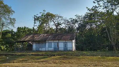 Lekhapani railway station, opened around 1890, was a major coal-loading point for Tipong collieries. There is a display tablet at the station which says that the station was closed to commercial traffic in 1993 and the last train ran on the line in 1997. The railway station was restored in 2009.[1][2]