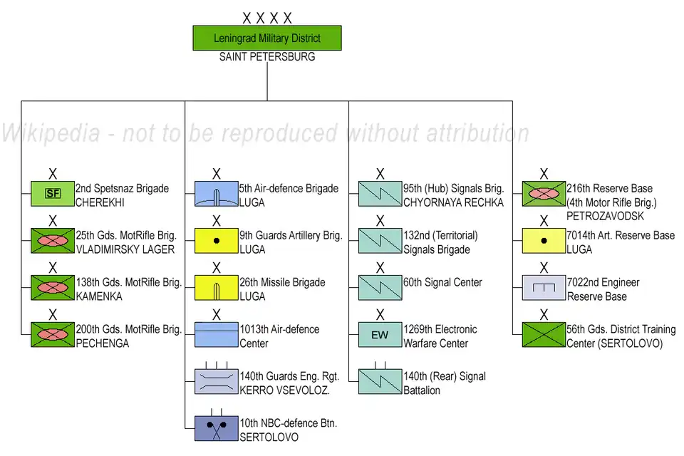 - ^ Nikolai Ogarkov, ed. (1979). "Leningrad Military District". Soviet Military Encyclopedia. Vol. 4: «К-22» — Линейный крейсер. Moscow: Voenizdat. pp. 614–617.