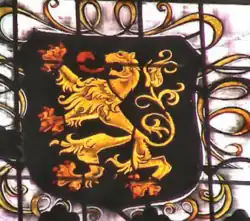 The Brabantian lion, A golden lion on a black shield, it was adopted around 1190 by the Duchy of Brabant en would later become the basis of the Leo Belgicus and the Belgian coat of arms and flag.